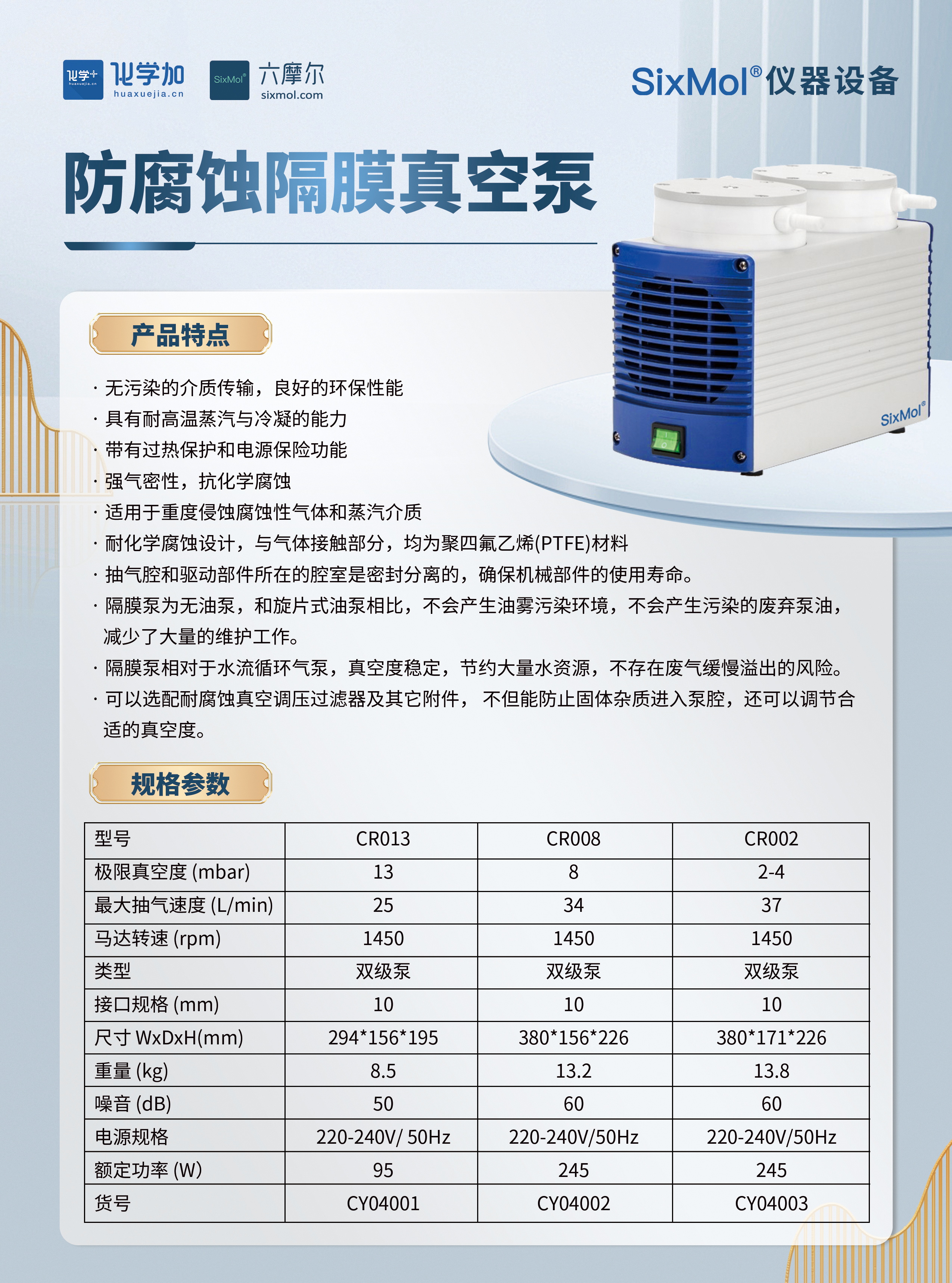 SixMol 防腐蝕隔膜真空泵CR013SixMol 防腐蝕隔膜真空泵CR013