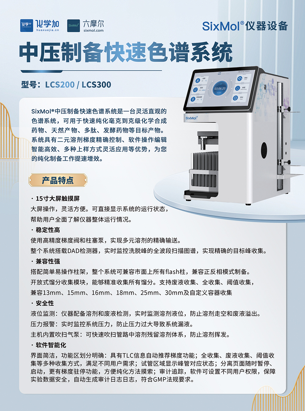 SixMol 中壓制備快速色譜系統SixMol 中壓制備快速色譜系統SixMol 中壓制備快速色譜系統