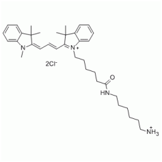 Cyanine3 amine是功能化的花菁染料,包含游離的氨基基團。Cyanine3是Cy3?的類似物。該染料的氨基基團可以和NHS ester,羧基基團(碳二亞胺活化后)及環氧化合物等活性基團反應。