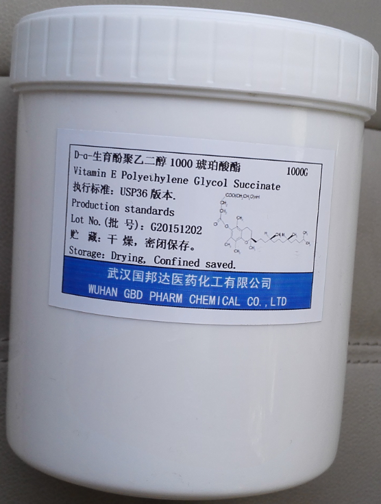 產品英文別名:Tocofersolan; D-alpha-Tocopheryl polyethylene glycol succinate; alpha-(4-((3,4-Dihydro-2,5,7,8-tetramethyl-2-(4,8,12-trimethyltridecyl)-2H-1-benzopyran-6-yl)oxy)-1,4-dioxobutanol poly(ethylene glycol)