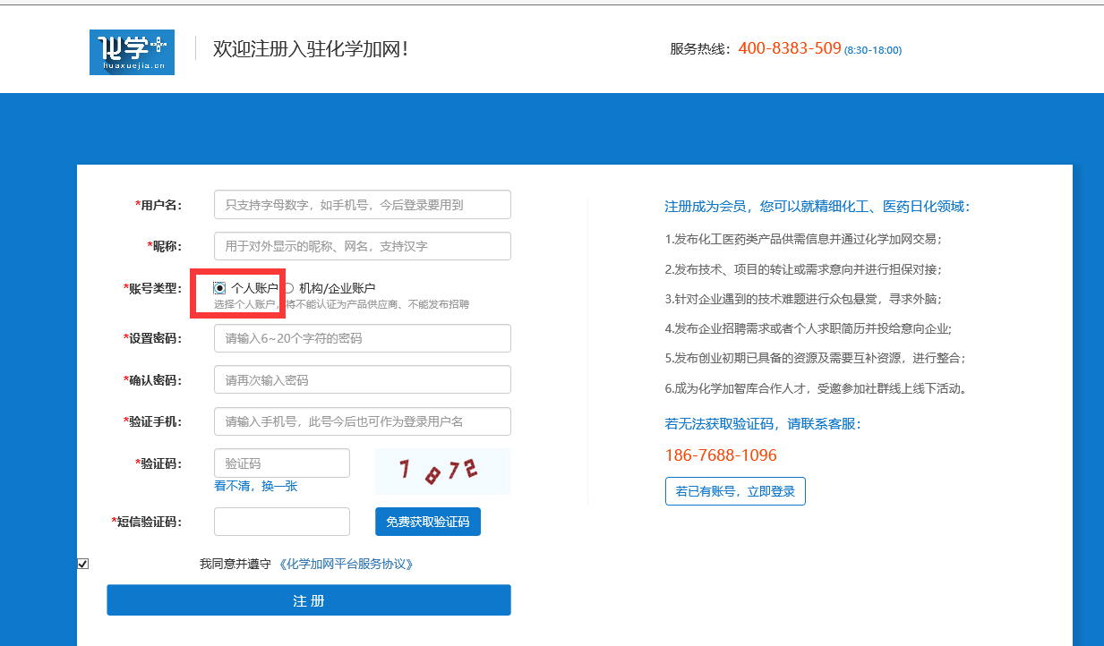 步驟一:求職者訪問化學加網注冊個人賬戶。注冊網址:http://www.zhhjzs.com/register.html,如下圖所示