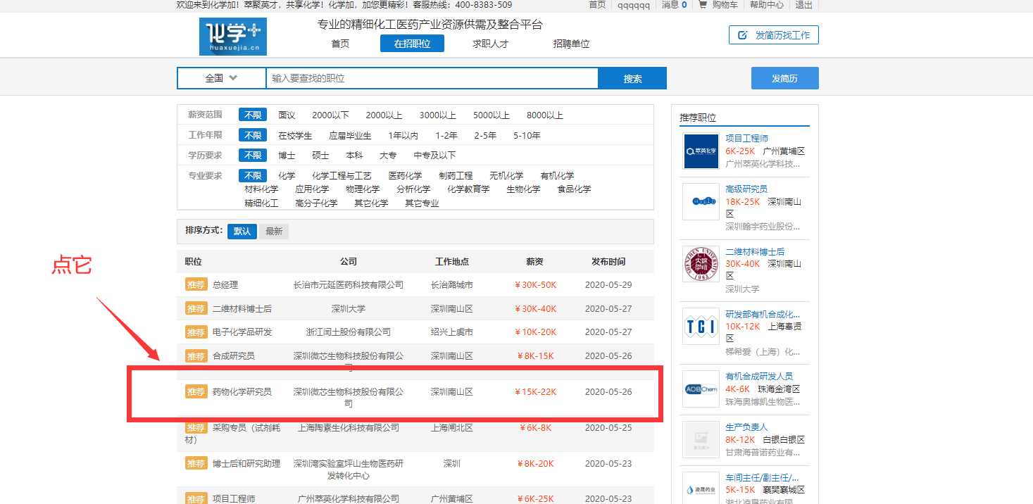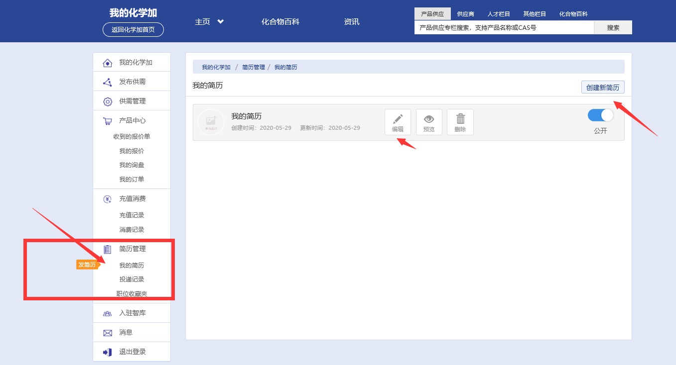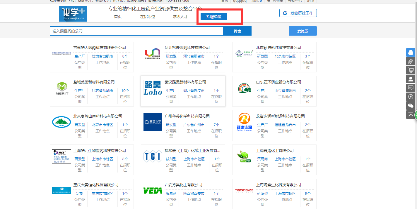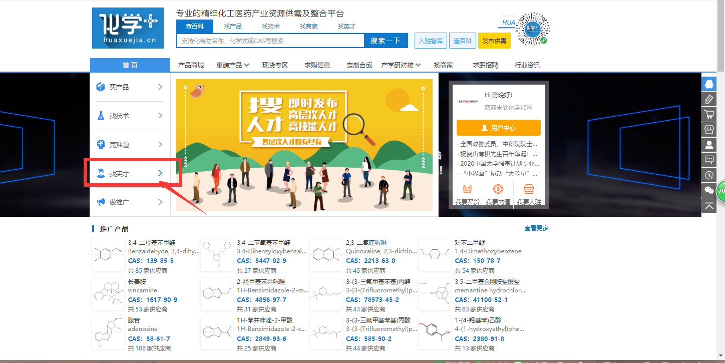 步驟五:創建好自己的簡歷,接下回到化學加首頁,進入“找英才”。