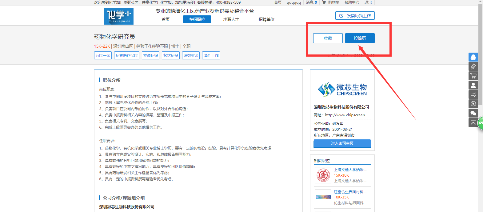 步驟七:看到心儀的職位,點擊進入,投遞簡歷。還可收藏該職位哦。