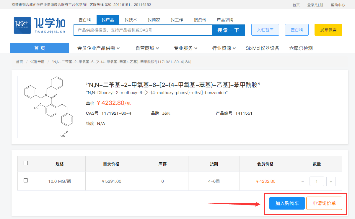 步驟二:點擊“加入購物車”或可以”申請詢價單“