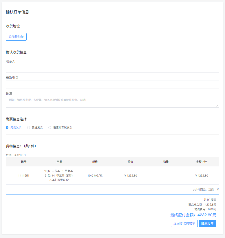 步驟四:根據提示完成訂單信息的填寫,最后提交訂單即可