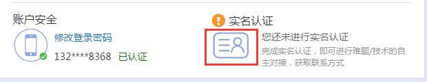 步驟二:在用戶中心首頁,點擊實名認證圖標