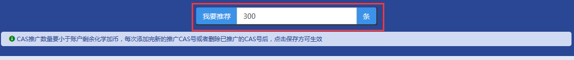 步驟三:這里可設置您要推廣的CAS條數,默認是您的賬戶化學加幣余額
