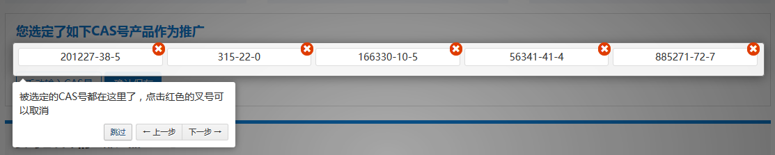 步驟五:被選定推廣的CAS號都在這里,點擊紅色的叉號可將對應的CAS號推廣取消。