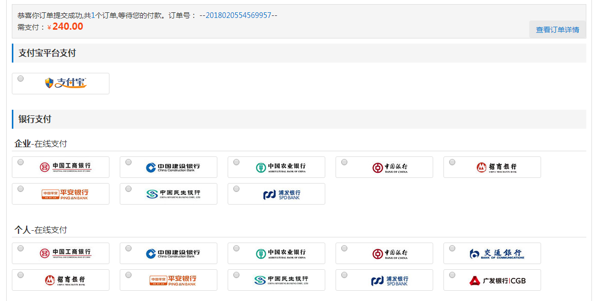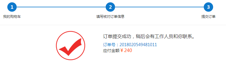 提交訂單之后,出現(xiàn)訂單提交成功的頁面,說明沒有問題,選擇在線支付的請按照引導(dǎo)付款。