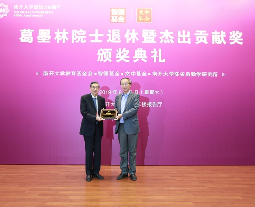 6月8日,南開大學舉行典禮,為今年退休的著名理論物理學家、中國科學院院士、南開大學陳省身數學研究所葛墨林教授頒發杰出貢獻獎,表彰他為南開改革與事業發展、推動我國學術繁榮與科技進步作出了卓著貢獻,并在國...