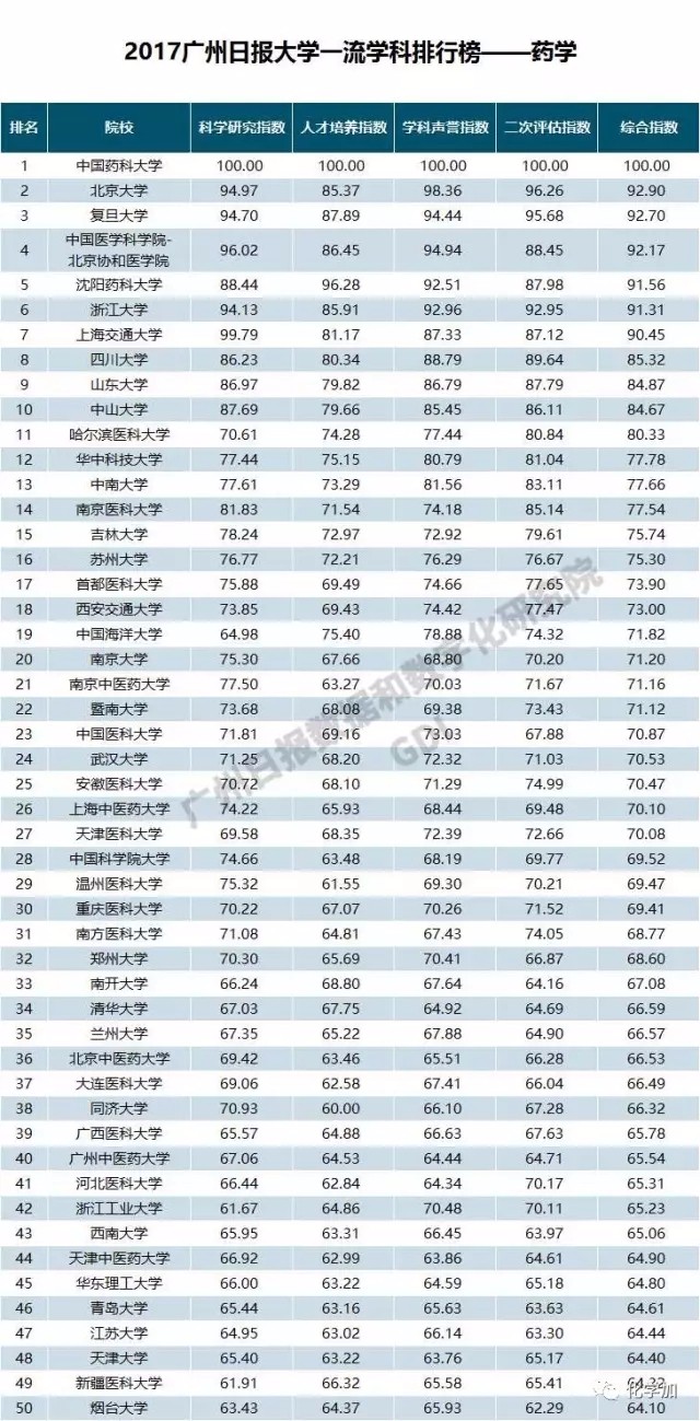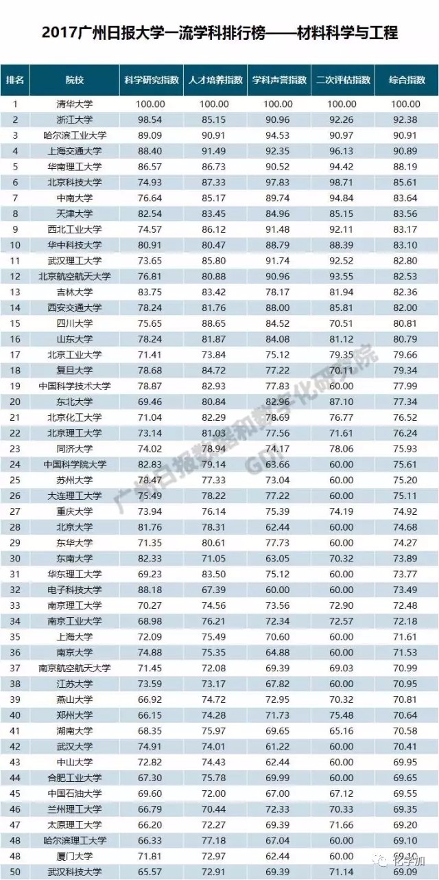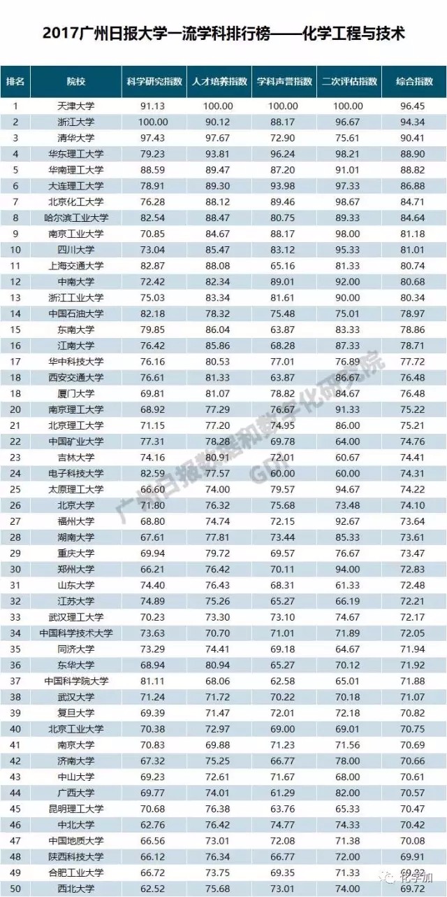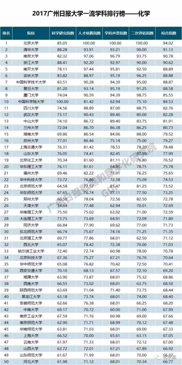 導讀:廣州日報數據和數字化研究院(GDI)發布“2017廣州日報大學一流學科排行榜”,小編摘取化學、化工、材料、藥學四個學科的榜單,一起來看看那些大學排在前面吧,有沒有大家的學校呢?