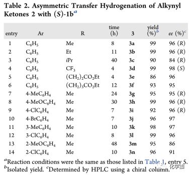 Table 2:不對(duì)稱轉(zhuǎn)移氫化底物芳基炔的擴(kuò)展基酮