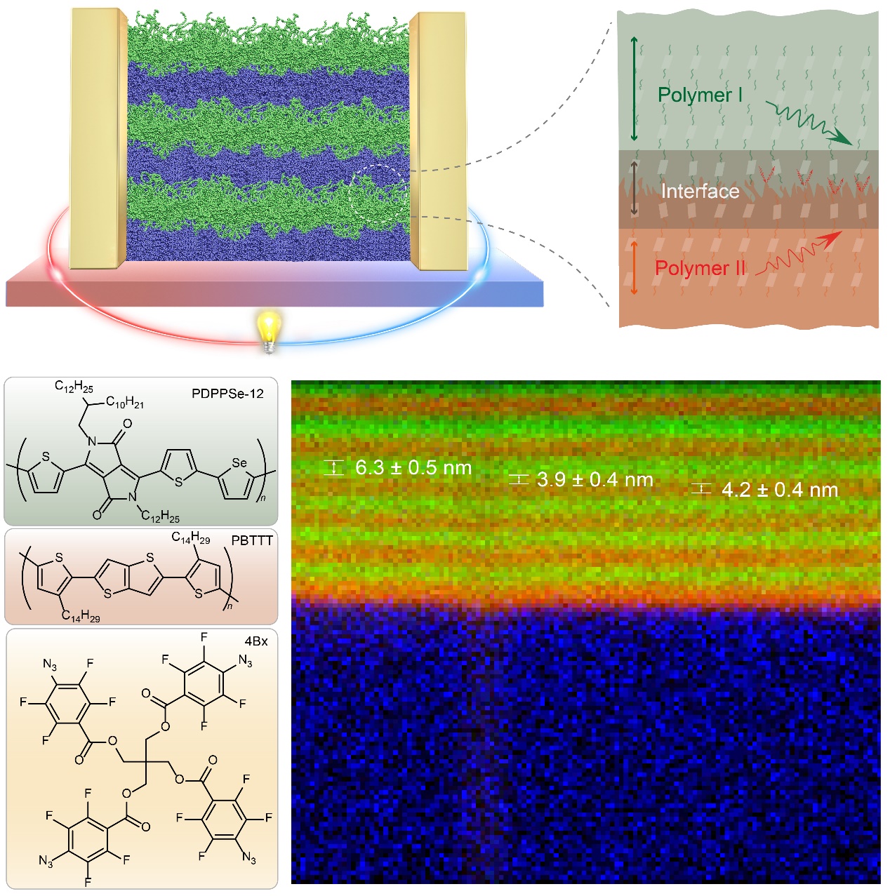 在國家自然科學基金委、中國科學院和北京市的支持下,中國科學院化學研究所朱道本/狄重安研究團隊與張德清課題組、北京航空航天大學趙立東課題組及國內外其他六個研究團隊合作,提出并構建了聚合物多周期異質結(PMHJ)熱電材料。該類型分子組裝體具有周期有序的納米結構,其中兩種聚合物厚度均小于10納米,相鄰界面約為2個分子層且具有體相異質特征。優化后的PMHJ薄膜不但可以保持優異的電荷輸運特性,同時大幅抑制聲子/類聲子傳播,從而實現了聚合物熱電性能的大幅躍升,為高性能塑料基熱電材料的研究和應用提供了全新路徑。