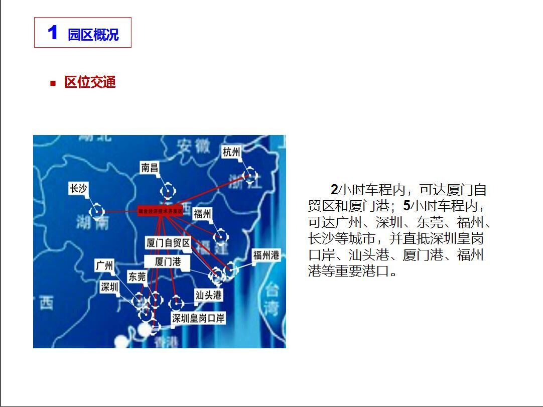 瑞金經濟技術開發(fā)區(qū)前身為江西瑞金經濟開發(fā)區(qū),創(chuàng)建于2002年5月,2012年4月江西省人民政府批準為省級經濟開發(fā)區(qū),2013年11月20日國務院批準為國家級經濟技術開發(fā)區(qū)。開發(fā)區(qū)由臺商創(chuàng)業(yè)園、金沙工業(yè)區(qū)、金龍工業(yè)區(qū)三部分組成,其中江西瑞金臺商創(chuàng)業(yè)園是核心區(qū),于2008年9月經國務院臺灣事務辦公室和江西省人民政府批準設立。瑞金經濟技術開發(fā)區(qū)是全國“農業(yè)產業(yè)化示范基地”、“鰻魚、螺旋藻加工出口示范基地”、江西省“十百千億”工程重點工業(yè)園區(qū)和省級民營科技園。 開發(fā)區(qū)總規(guī)劃面積43平方公里,規(guī)劃面積11平方公里,重點發(fā)展電氣機械及器材制造業(yè)、食品藥品加工業(yè)和礦產品加工業(yè)。按照“項目集中、產業(yè)集群、土地集約、功能集成”的發(fā)展原則,開發(fā)區(qū)累計投入建設資金6.8億元,完成了11平方公里的控制性詳細規(guī)劃和生態(tài)園區(qū)建設規(guī)劃,開發(fā)面積約8500畝,建成了“四橫三縱”主干路網及標準廠房約25萬平方米,綠化、亮化、供水、供電、排水、排污等配套設施建設基本完善,并已啟動了勝利大道、經三路、金鑫二路、創(chuàng)業(yè)一路等9條道路以及工業(yè)污水處理設施建設。截止目前,開發(fā)區(qū)共有落戶企業(yè)153家,其中已投產企業(yè)115家。
