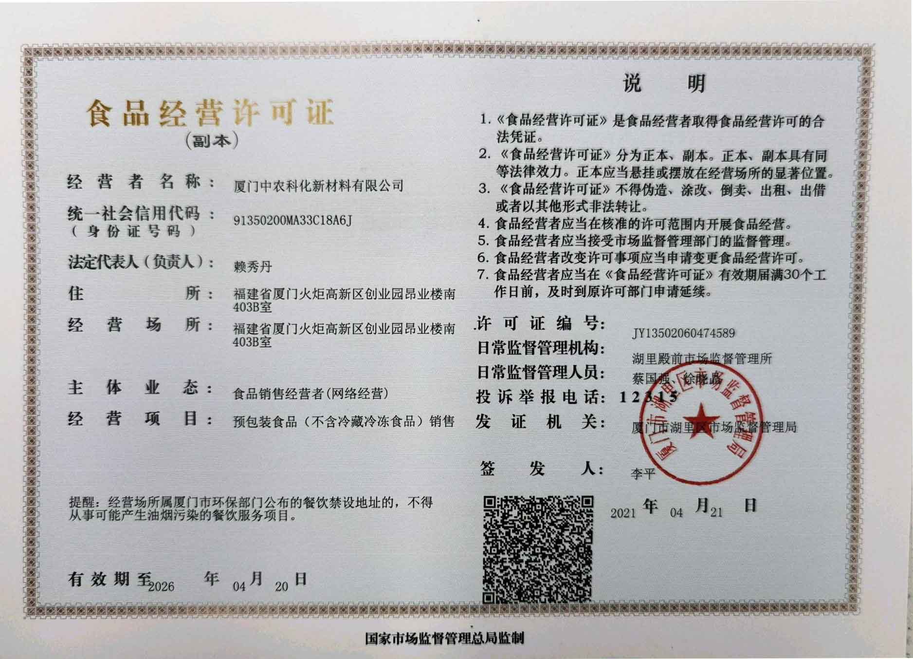 廈門中農科化新材料有限公司